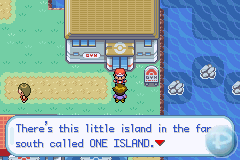 Entre no porto de Vermilion, voc� ser� levado para as Sevii Islands. V� para a ilha 1 e fale com o Celio. Ele dir� que precisar� dos itens Ruby e Sapphire para poder fazer aquela m�quina funcionar e permitir que voc� troque os pok�mons de Hoenn/Johto para essa vers�o. Voc� deve ir pegar o Ruby, ele est� naquele lugar onde tem dois Rockets na ilha 1 (bem ao norte, perto do Moltres, no Mt. Ember, lembrou?). Lute com os Rockets e entre numa caverna que agora se abriu ali perto.