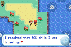 Esteja carregando no m�ximo 5 pok�mons. Surfe � esquerda da ilha, indo em dire��o norte-esquerda. V� seguindo as passagens entre as pedras na �gua, em dire��o � esquerda. Chegar� em uma ilhazinha. Aqui tem uma treinadora e um velho. Fale com um velho que ele te dar� um ovo, se voc� depois der 1000 passos carregando ele em sua equipe, nascer� um Togepi.