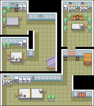 Pronto, agora saia da� e volte ao 1� andar, ent�o comece a explorar andar por andar, derrotando todos os que voc� encontrar pela frente e pegando alguns itens. Se precisar recuperar seus pok�mons, sinta-se livre de sair do pr�dio e ir ao Centro Pok�mon. Se preferir, ao sul-esquerdo do 9� andar, h� uma mulher ao lado de algumas camas que recuperam seus pok�mons. Ao explorar o pr�dio, cuidado, n�o pise naqueles bot�es no ch�o, que eles v�o te tranportar para andares diferentes e v�o acabar te confundindo. Voc� ver� tamb�m que tem algumas salas separadas por uma parede diferente, na verdade isso � um port�o. Todas as vezes que voc� encontrar um port�o, fale com o port�o e aparecer� a frase: "Bingo! The Card Key opened the door", e o port�o ir� se abrir para voc� explorar a sala por dentro. Lembrando que voc� n�o deve pisar nos bot�es.