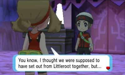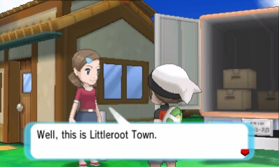Ao descer, sua m�e te chamar� para ver uma not�cia de seu pai na televis�o, mas quando voc� chegar j� ter� acabado. Saia e v� at� a casa de seu vizinho, que � o personagem de sexo oposto ao seu. Brendan/May � filho(a) do professor Birch e ser� seu/sua rival. Ap�s falar com ele(a), saia da casa e siga para o norte da cidade. Voc� encontrar� o professor Birch sendo atacado por um Poochyena. Escolha um pok�mon na bolsa dele para lutar contra o Poochyena. Voc� pode escolher entre Treecko, Torchic e Mudkip. Ele ser� o seu inicial. Derrotando o Poochyena, o prof� ir� te levar at� seu laborat�rio para te dar o pok�mon. Ele tamb�m dir� para que v� encontrar Brendan/May ao norte da cidade Oldale.