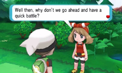 norte da cidade. Nos matinhos daqui voc� tamb�m consegue achar Wingull. Continue at� encontrar seu/sua rival. Brendan/May ir� te desafiar para uma
