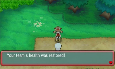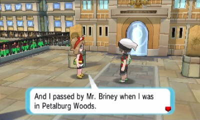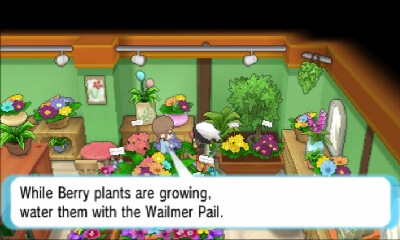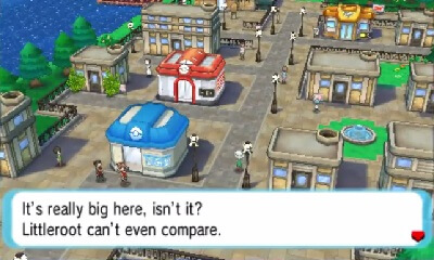Do lado de fora da floresta voc� encontrar� o Pretty Petal Flower Shop. Fale com todo mundo aqui. Tem uma menina aqui que te d� uma berry todos os dias, passe aqui diariamente para pegar sua berry. � neste lugar que recebemos o Wailmer Pail, item que serve para regar berries. Voc� pode plantar as berries no mesmo lugar onde voc� as colhe. No lado de fora atr�s dessa casa tem um lugar com matinho. Examine os espa�os vazios onde n�o tem matinho, em alguns deles tem itens, voc� poder� encontrar itens escondidos dessa forma por todo o continente. Continue seu caminho passando por uma ponte onde temos nossa primeira batalha em dupla. Logo estar� na pr�xima cidade.