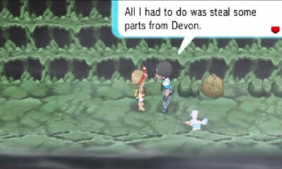 Nesta �rea podem surgir pok�mons como Whismur, Nincada e Skitty. Enfrente alguns treinadores nesta rota at� chegar a uma caverna onde est� um velho marinheiro na frente. Ele � o Mr. Briney. O capanga da Equipe Magma/Aqua roubou o Peeko, o Wingull do Mr. Briney. Entre na caverna e derrote o ladr�o. Pegue dele o Devon Parts que ele roubou do pesquisador e resgate o Peeko. O Mr. Briney ir� levar o Peeko e te dar� viagens de barco quando precisar. Volte para Rustboro e encontre o pesquisador que est� perto da Devon Corp. Receba uma Great Ball como agradecimento por ter recuperado o Devon Parts. O pesquisador ir� te levar para conhecer o Mr. Stone, o presidente da Devon Corp. Ele ir� atualizar o seu Pok�Nav Plus com a fun��o BuzzNav, uma esp�cie de televis�o que traz not�cias de Hoenn. Depois ele lhe dar� uma carta (Letter), que dever� ser entregue para Steven em Dewford.
