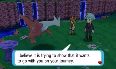 Acompanhe-o e ajude-o a capturar um Ralts. Feito isso, voc�s voltar�o ao