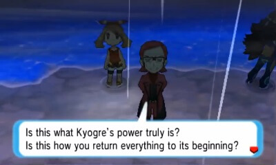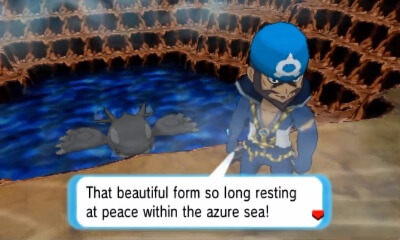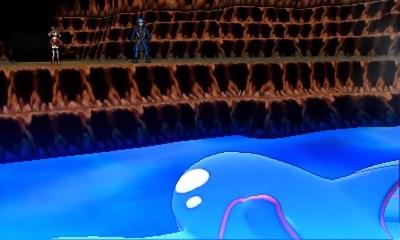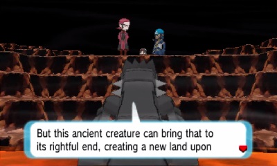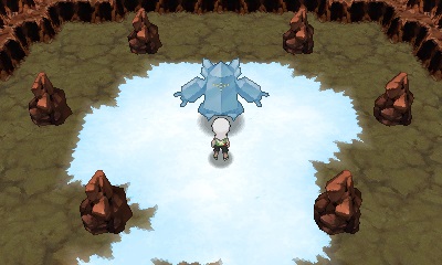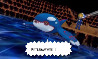 uma enorme gravura pr�-hist�rica de Groudon ou Kyogre, dependendo de sua vers�o.