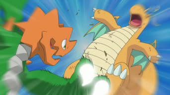 Quando Iris e Clair iam começar a batalha, Gible surge de um buraco no chão. Clair diz que ele veio assistir a batalha. Dragonite e Druddigon trocam golpes e Druddigon começa levar a vantagem. O Dragonite de Iris se irrita e passa a usar golpes por conta própria. Iris pedia para Dragonite desviar dos golpes de Druddigon, mas ele não a ouvia e recebia os golpes diretamente. Clair repreende Iris. Iris olha para Axew e Gible e entende o que deve fazer. Iris se conecta com o coração de Dragonite e percebe que ele acha que seus golpes não são tão bons quanto os de Druddigon. Dragonite passa a obedecer Iris de novo e consegue acertar um golpe certeiro em Druddigon. A batalha continua bastante acirrada, até Dragonite ficar em desvantagem e cair derrotado.