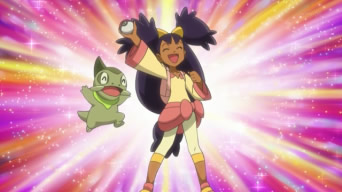 Iris cumprimenta Dragonite pela boa batalha e conta como dessa vez os corações deles estiveram ligados. Ela ia agradecer Gible que estava torcendo por eles também, mas ele havia ido embora. Iris agradece Clair pela batalha. Quando estava indo embora, Gible aparece e Iris percebe que ele queria segui-la em sua jornada. Iris captura Gible e se despede de Clair. Em seu caminho, Iris, Axew e Gible observam o pôr do sol. Iris se pergunta como Ash e Cilan devem estar. Iris, Axew e Gible avistam um Rayquaza passar voando pelo céu. Iris decide seguir em direção ao caminho por onde Rayquaza estava indo.
