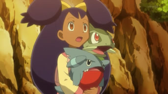 Iris consegue se conectar ao coração de Gible e tem uma visão. Ela percebe que ele foi arrastado para a cidade por um Skarmory e ficou perdido, buscando uma forma de voltar para o seu lar. Iris conta aos cidadãos da cidade que se levarem Gible de volta a um campo florido ele irá parar de causar problemas. Clair aparece e diz que irá levar Gible de volta ao campo florido. Iris e Clair vão até o campo florido, onde o Dragonite de Clair costuma ficar. Elas deixam Gible lá, que fica feliz por estar de volta. Iris desafia Clair para uma batalha e as duas seguem para o ginásio. Clair usará o seu Dragonite de cor diferente que capturou nas Ilhas Decolore. Iris irá batalhar usando o seu próprio Dragonite.