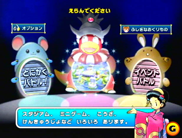 Tumbling Togepi: Parecido com aquele minigame dos Rattatas do primeiro Stadium.Desvie dos obstáculos e passe em cima das setas azuis.